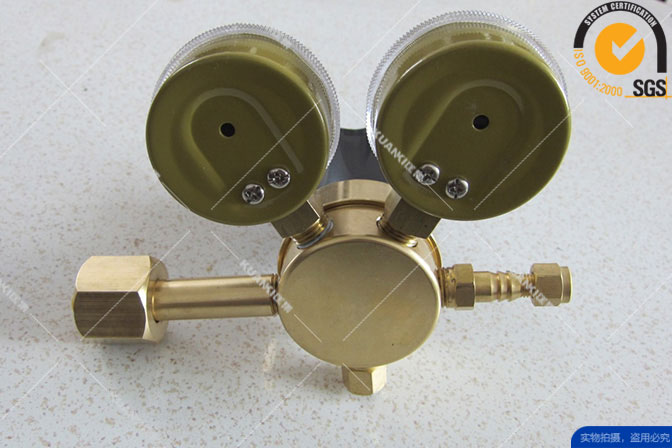 全铜单级减压器即能保证输出稳定的气体工作压力,使其出低压室往外输送的工作压力不至于随着气瓶内高压气体压力的变化而变化。