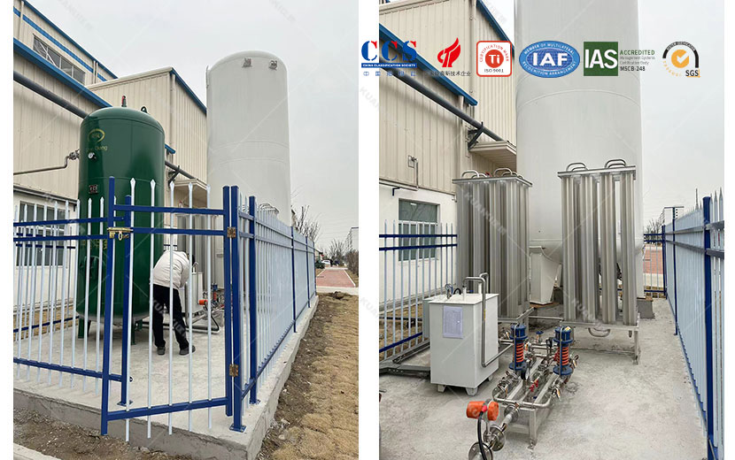 淮安比亚迪客户新建车间要用到二氧化碳焊接,经跟客户沟通,从前期设计用量到现场的布置施工都有我公司全部,这套设备所用到的设备:储罐、汽化器、水浴电加热汽化器、调压阀组、流量计、缓冲罐、电箱控制、管道及护栏的安装。