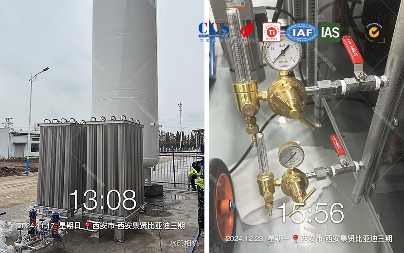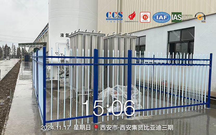 西安集贤比亚迪客户三期35号厂房,新建电机工厂车间,现需要氩气集中供气方案,经跟客户沟通,前期设计用量到现场的布置施工都有我公司提供。这套设备所用到的设备有::储罐、汽化器、调压阀组、流量计、配电箱、低压报警系统、管道及护栏安装。