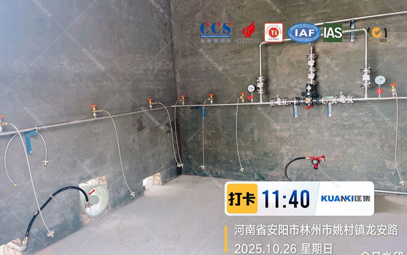 光远新材料新建丙烷气站,需要提供现场集中供气方案,经过于客户电话沟通、腾讯会议确认,从前期设计到管道布置安装都由我司提供。成套设备所用到设备分别是:丙烷汇流排、液相全自动切换、电加热水浴式汽化器、双路调压阀阀组、双路过滤阀组、浓度泄露报警系统、低压报警系统集成到PLC控制柜。丙烷系统用于后端反应釜燃烧使用。
