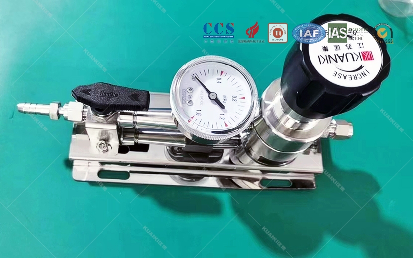 使用说明:将高压金属软管连接钢瓶 打开钢瓶瓶阀通气后 依次打开隔膜阀 减压器 将需要的压力在减压器上调节好通到后端使用。