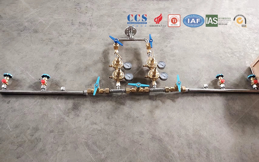 产品功能:该产品主要是将多个钢瓶统一集中汇流、减压、供气,能实现将多个高压气瓶统一在一个位置集中汇流减压后到终端使用。