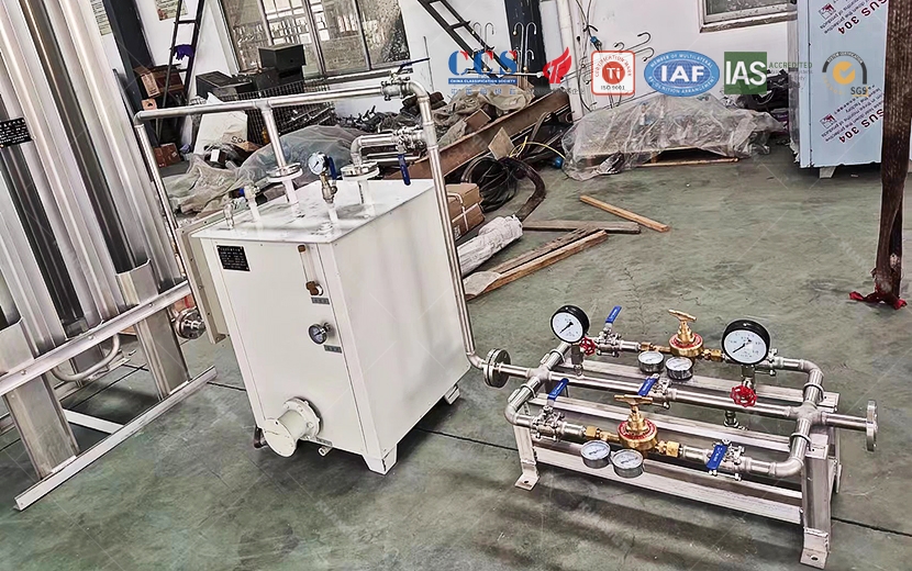 水浴电加热汽化器主要是通过加热水,气体走加热水里面的管道,吸收水的热量达到汽化液态气体的效果。