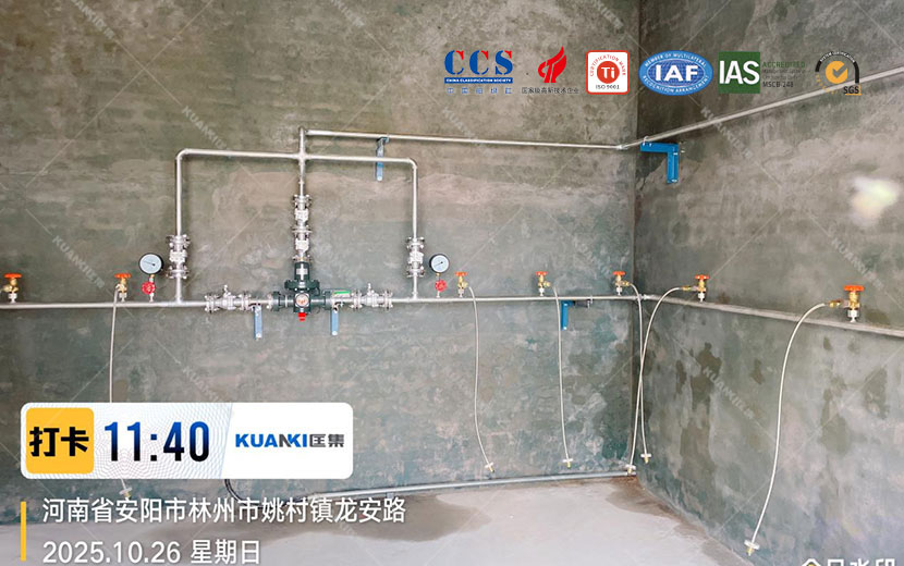 光远新材料新建丙烷气站,需要提供现场集中供气方案,经过于客户电话沟通、腾讯会议确认,从前期设计到管道布置安装都由我司提供。成套设备所用到设备分别是:丙烷汇流排、液相全自动切换、电加热水浴式汽化器、双路调压阀阀组、双路过滤阀组、浓度泄露报警系统、低压报警系统集成到PLC控制柜。丙烷系统用于后端反应釜燃烧使用。
