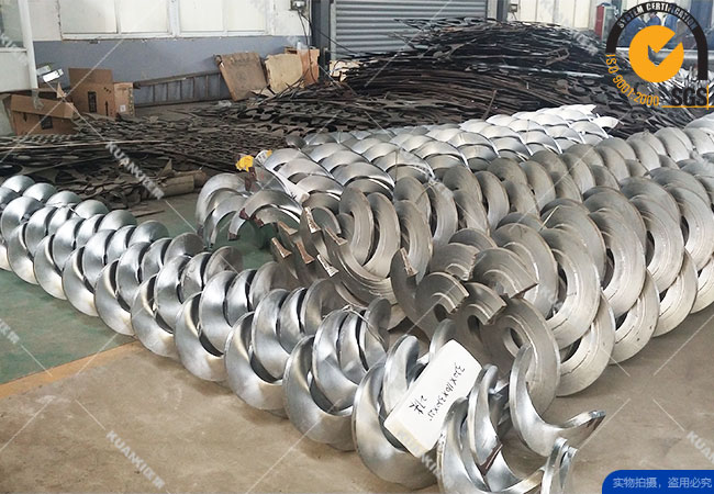 江苏匡集工业旗下输送设备制造厂拥有15年以上设计,生产,加工经验的团队,70%产品销往国内,30%产品销往国外,工程师3名,生产团队20人以上,专业售后团队4人,我们一直坚持向客户快速、准确地提供各种螺旋叶片(华东地区生产基地),精心选材(碳钢、合金结构钢、304不锈钢、316L不锈钢等质优钢材)、连续叶片冷轧一次成型,螺距均匀,无裂痕,等厚叶片冲压成型(特种液压机)、工艺成熟(加热温度均衡、等离子切割、激光切割、表面光滑、硬度高、耐磨),生产板厚可达60MM,外径最大可达1600MM。